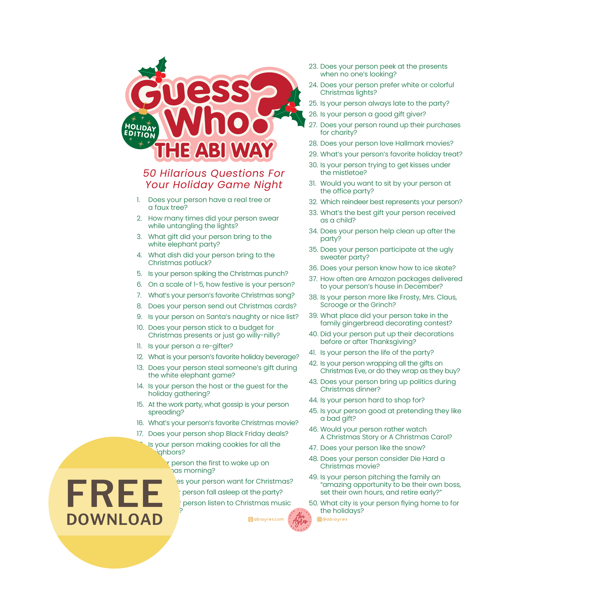 Guess Who Questions - Holiday Edition