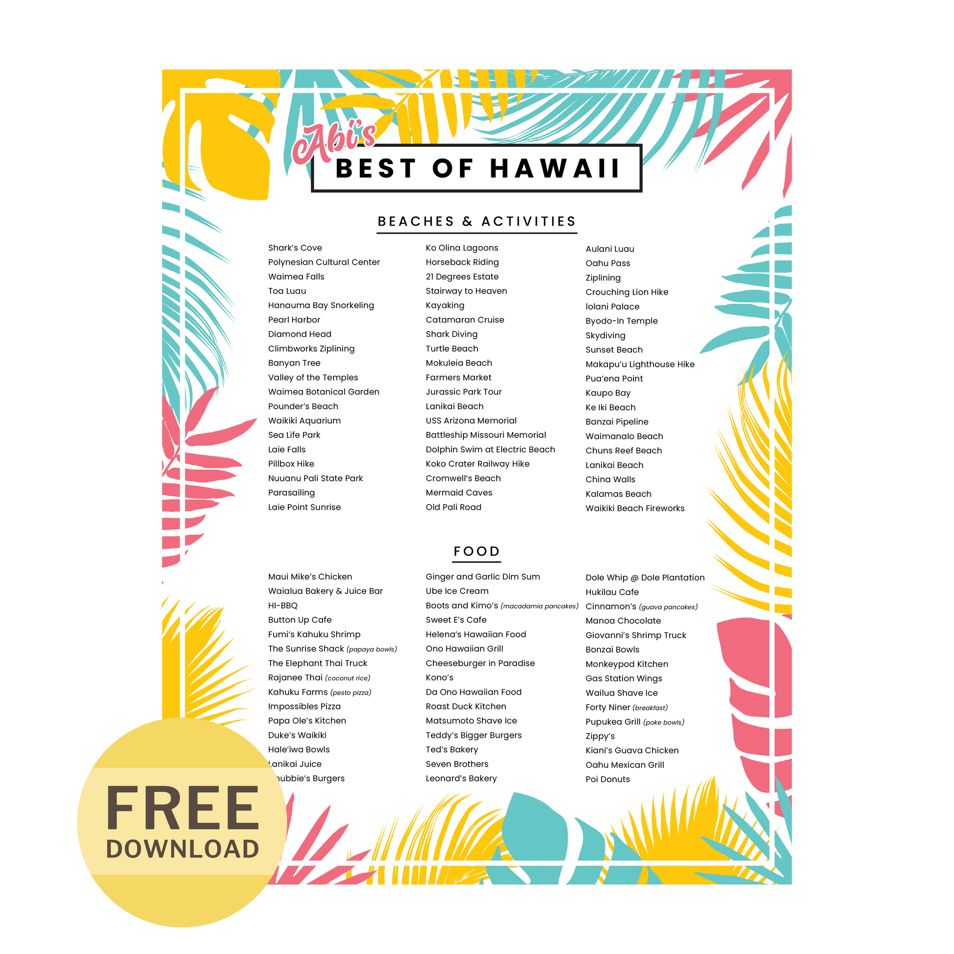 I asked you guys for the best things to do in Hawaii and you delivered! Here's a list of all your favorite spots in paradise. Take it along on your next (or first) visit!